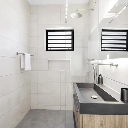 This 2-bathroom villa includes a bathroom with a walk-in shower and a separate toilet. Bathrooms also feature towels for added comfort.